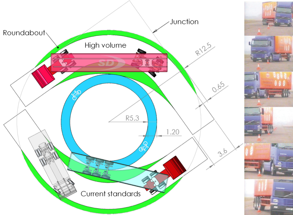Tethered interlink vehicles run alongside battery electric trucks and cars. City cars and freight pods catch a lift on carBuses and charge up on the move. Tunnels and bridges provide access to the network for pedestrians and cyclists.